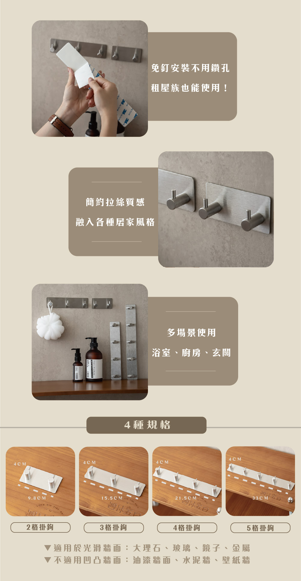 🪝 三鉤不鏽鋼貼片,建議承重:約 3~6kg