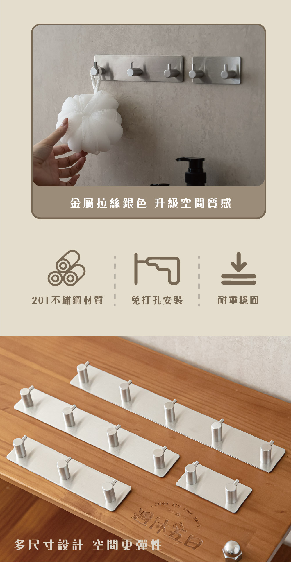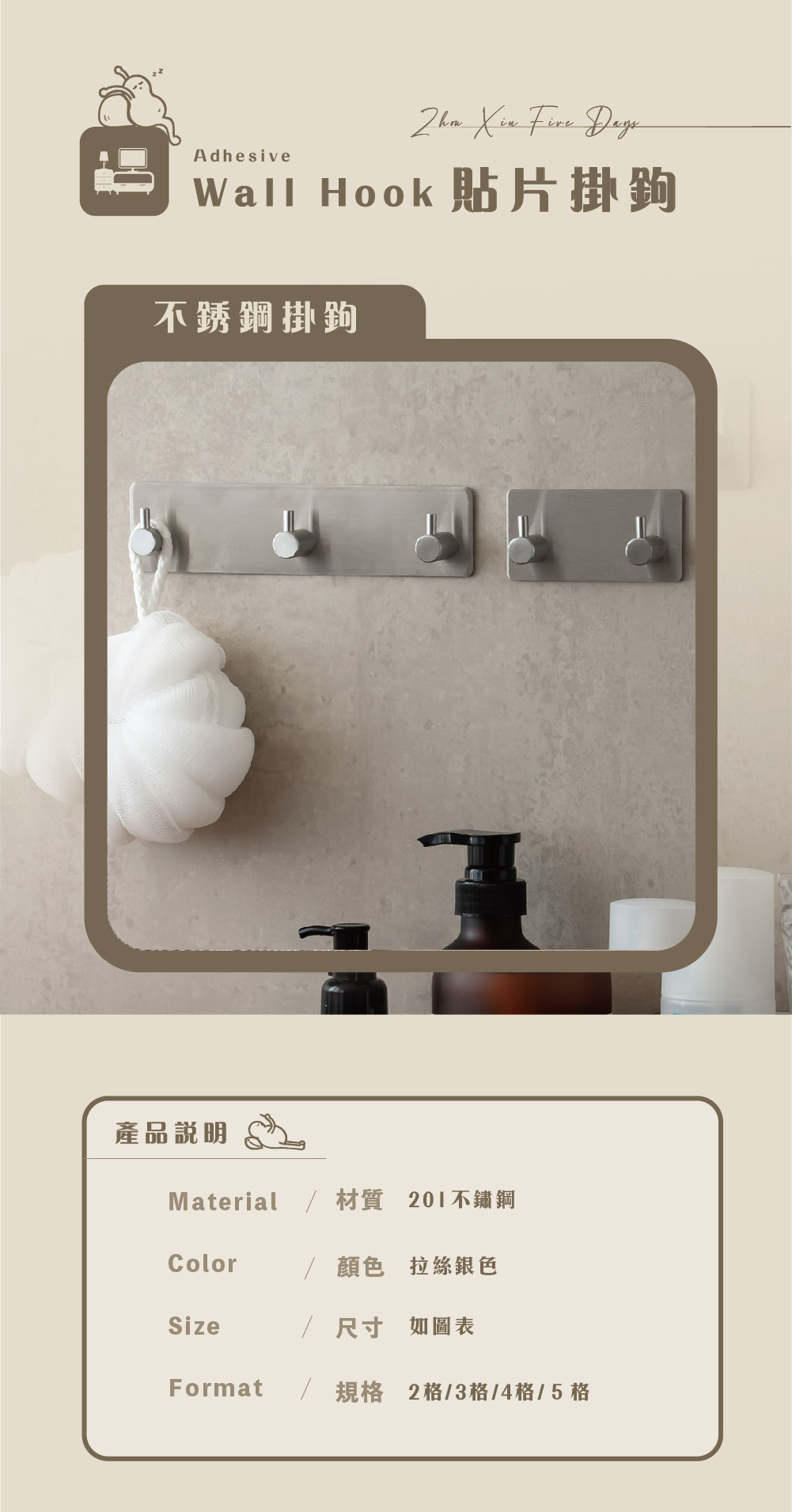 🪝 五鉤不鏽鋼貼片, 建議承重:約 5~8kg