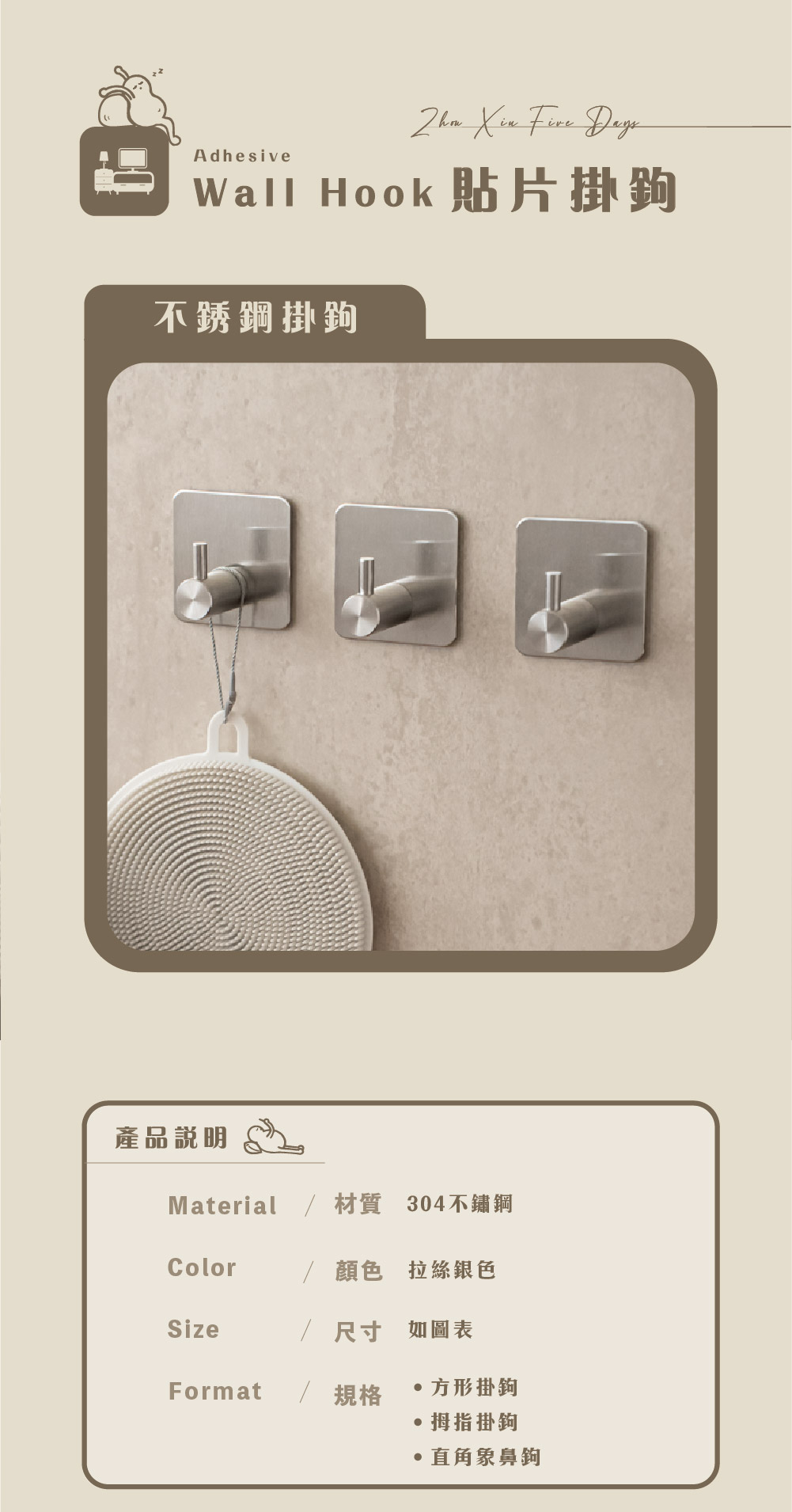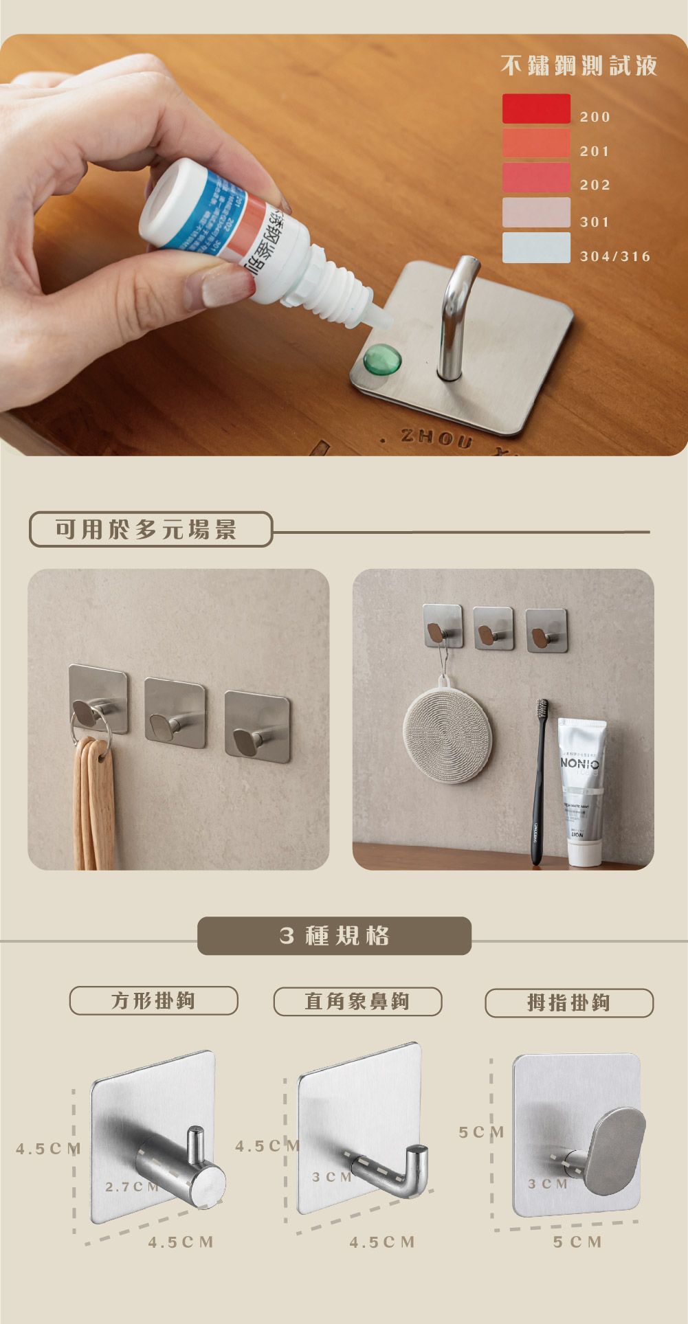 A2:🪝 單鉤不鏽鋼貼片,約2-3kg