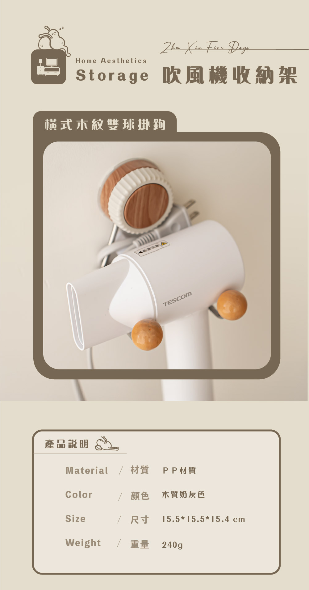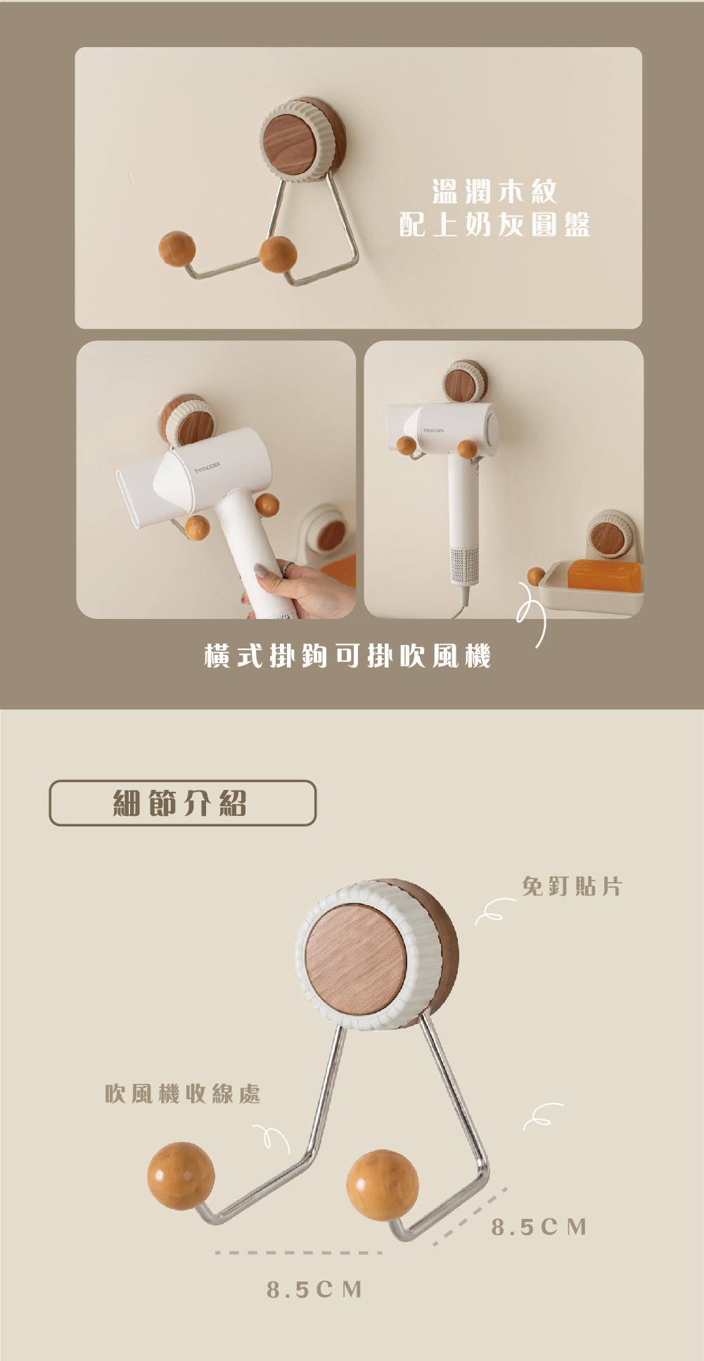 【 木質美學 | 貼片吹風機收納 】